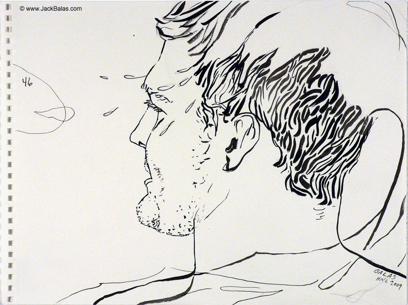 Jack Balas, 2009; Honolulu Drawing #46; Untitled (Head / Wave); ink on paper, 9" x 12"