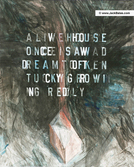 Jack Balas, 1983; A LIVE HOUSE; acrylic on paper; 40" x 32". Inspired by Walt Whitman.