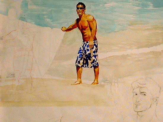 Jack Balas, 2003, 1st WAIKIKI; oil, pencil & ink on paper, 40" x 32"