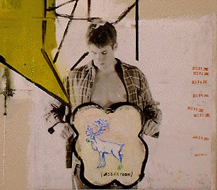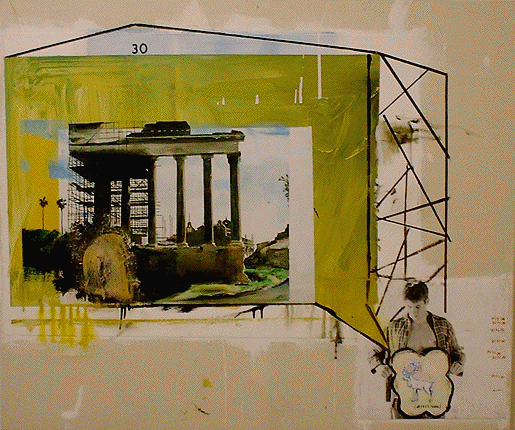 Jack Balas, 2003: ASSERTION; oil & enamel on paper and B&W photo mounted to canvas; 32"x38"