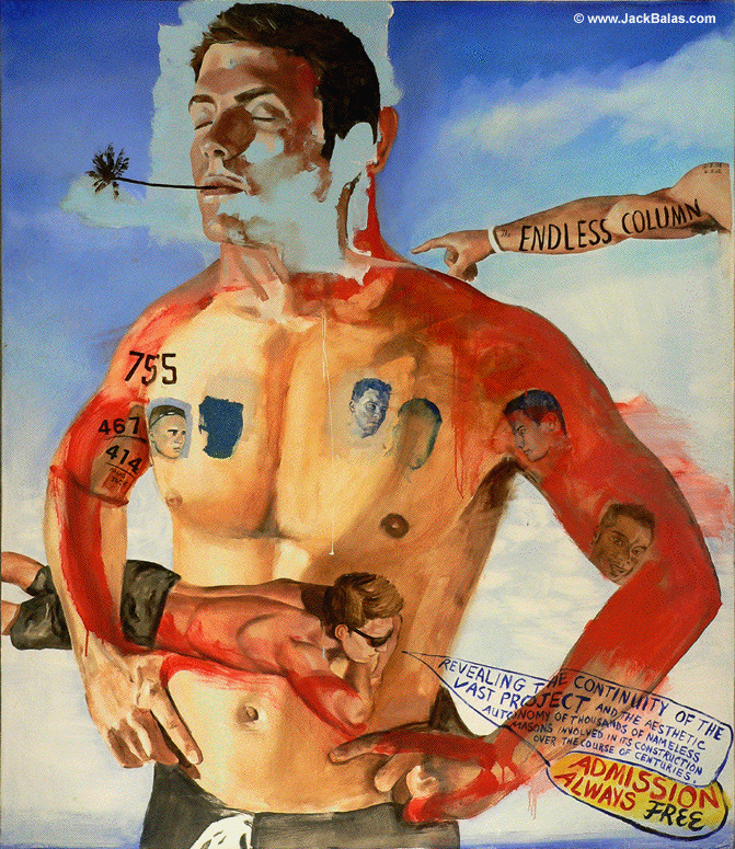 Jack Balas, 2012-2008; THE ENDLESS COLUMN (#755/ 467 / 414); oil and enamel on canvas; 56" x 48"