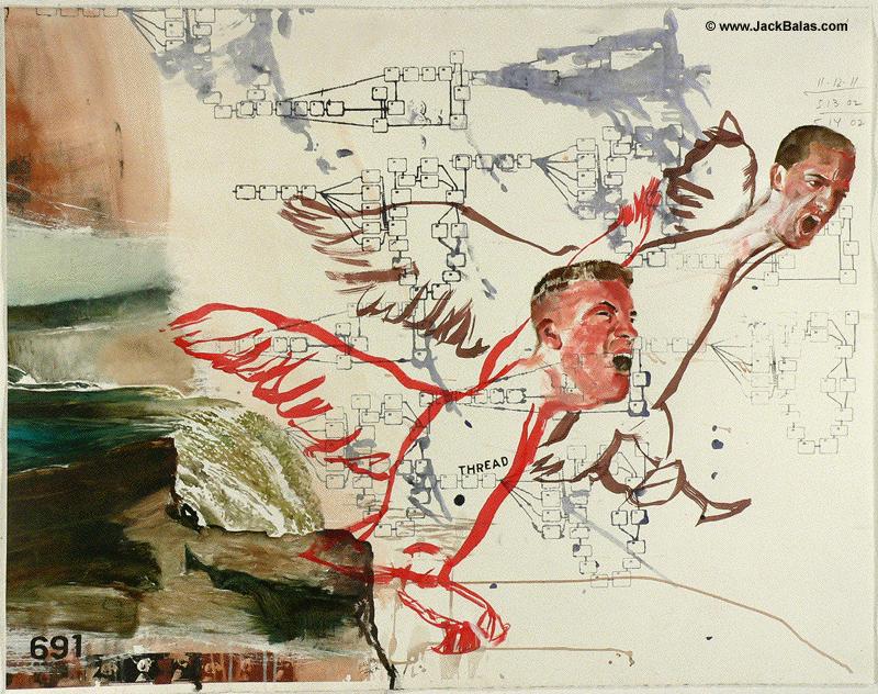 Jack Balas, 2011; THREAD (#691); oil, acrylic and ink on paper; 30" x 38.5"