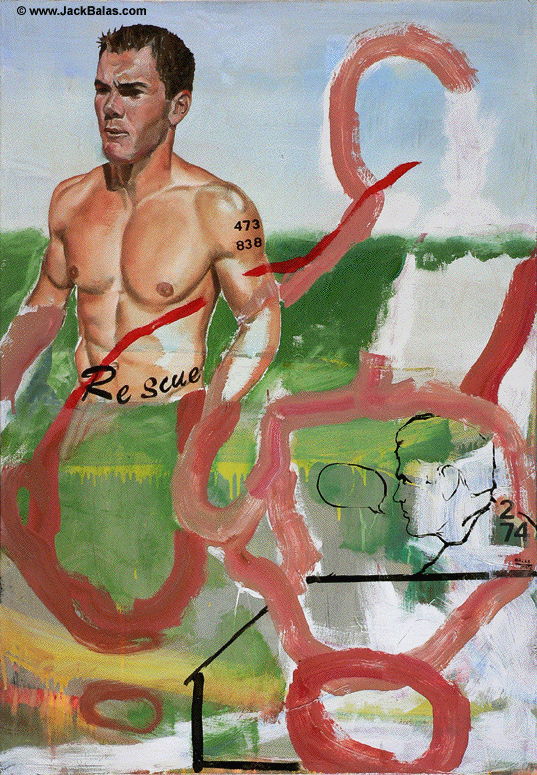 Jack Balas, 2012; RESCUE (#838-473-274); oil and enamel on canvas, 40" x 28"