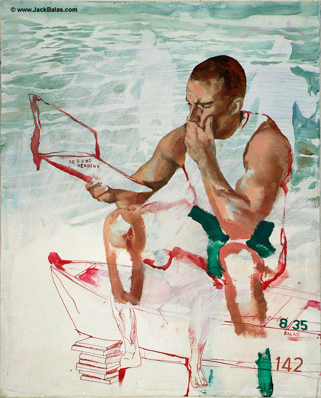 Jack Balas, 2012; SECOND READING (#835-142); oil and ink on canvas, 20" x 16"