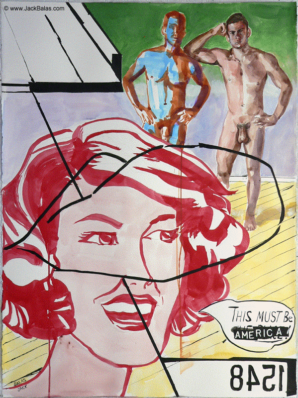 Jack Balas, 2018: THIS MUST BE AMERICA (#1548); watercolor, ink and acrylic on paper , 30" x 22"
