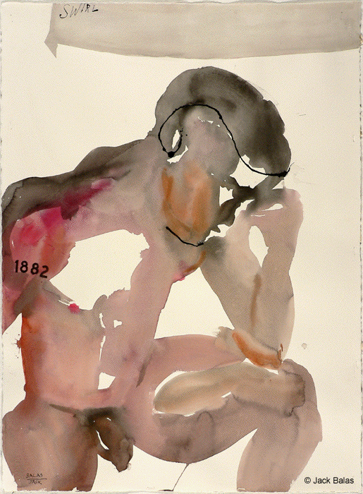 In spring of 2020, right as the Coronavirus / Covid-19 pandemic was shutting down the world, I began work on what became this series of paintings. The more I worked, the more I thought I was painting "company" -- visitors we were not allowed in lockdown in many states, but with social distancing neither required nor desired. Here are studio groups as the work goes along, some getting "finished" before others, while I try and figure out what they are all about. They are all brush-drawn India ink and watercolor on 30x22" Arches paper. What appear to be borders around each piece are the backing boards I work on. Farther down a grid of the full series is being posted, with continual updates.