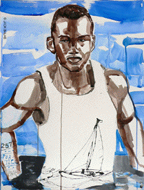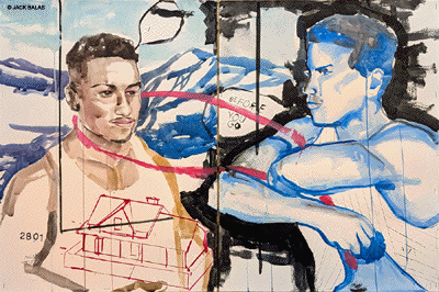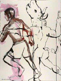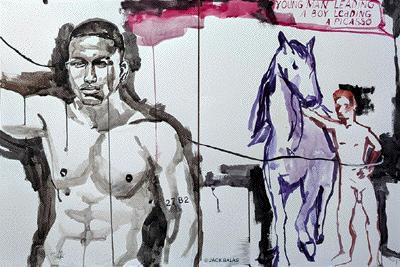 ![]() YOUNG MAN LEADING A BOY LEADING A PICASSO (#2782) India ink & acrylic on 2 paper panels, 24 x 36 inches overall |