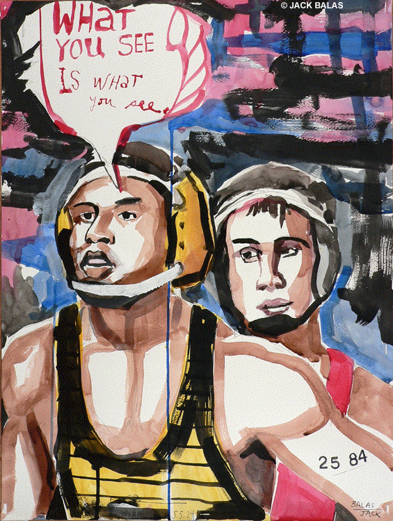 ![]() I VOTE FOR BRUCE (#25-2844) India ink & acrylic on 2 paper panels, 44 x 30 inches overall |