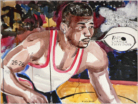 ![]() (Etude #1, DEJEUNER SUR LOCKER ROOM) India ink, oil & acrylic on paper, multi-panel, 52 x 40 inches |