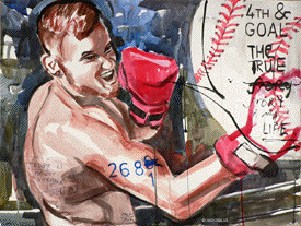 ![]() 4TH & GOAL, THE TRUE STORY OF MY LIFE (TODAY IS FRIDAY NOVEMBER 1, 2024) (#2681) India ink & acrylic on paper, 18x24 inches |
