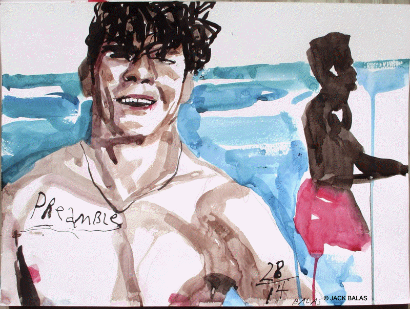 ![]() THE PROTAGONISTS ARRIVE AMID HEAVY SURF (#2789) India ink & acrylic on 2 paper panels, 24 x 36 inches overall |