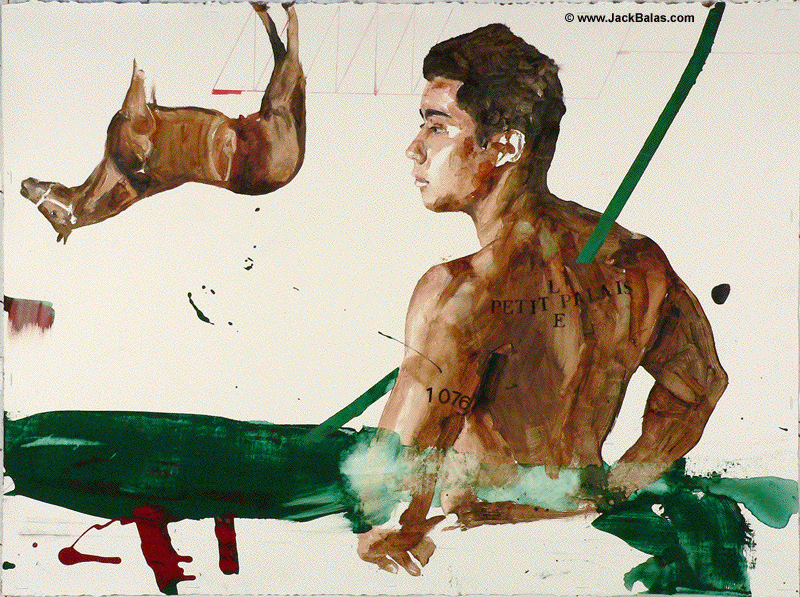 Jack Balas, 2014; LE PETIT PALAIS (#1076) (from the series Muse/Museum); oil and enamel on gessoed paper, 22" x 30"