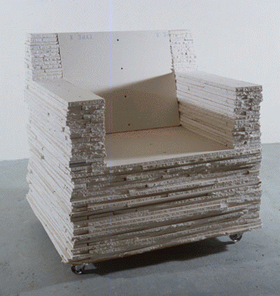 Jack Balas, Drywall Chair, 1999; drywall over wood armature with casters; 34"x33"x27"