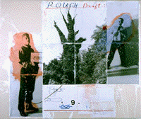 Another example, "NAME MATTERS," is a conceptually-based series of works on paper that considers the segmentation or specialization to be found in today's art world. The series takes ads from art magazines and, via collage or other media, inserts my own name into lists or other monolithic presentations of "big" names -- at once offering fictions that could become reality upon reproduction or publication, while questioning the surface styles that go along with name recognition. The subsequent series "ACTS OF APOSTLE" is more fanciful, taking the pages of an old Janson's art history text and musing (with a variety of media) about what and how we learn in all those darkened slide-projection classrooms.